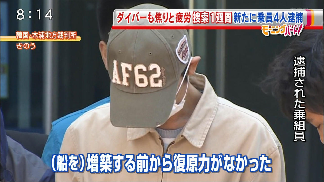 21日に新たに逮捕状が請求されたセウォル号の1等航海士ら4人が報道陣の取材に応じ、